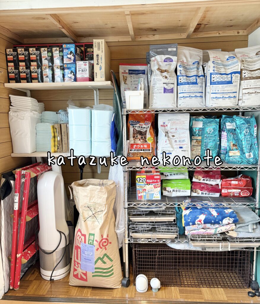 猫フードや猫グッズなどを保管している収納スペースになります。
