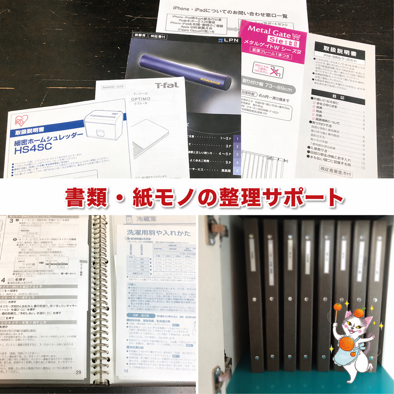 煩雑(はんざつ)になりがちな紙類の整理も、丁寧にサポートいたします。